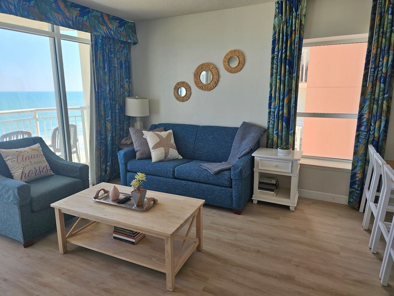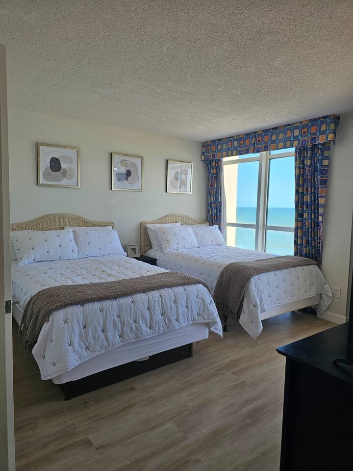 Wake up to breathtaking ocean views and the soothing sound of waves at this beautiful beachfront retreat. Perfect for families, couples, or a relaxing getaway, this coastal escape offers the ideal mix of comfort, convenience, and resort-style fun. Step out onto your private balcony and take in panoramic views of the Atlantic—whether you’re sipping your morning coffee or unwinding after a day in the sun, the scenery never disappoints. Inside, you’ll find a bright and welcoming space designed for relaxation, featuring: • A fully equipped kitchen for home-cooked meals • Comfortable bedrooms for a restful night’s sleep • Open living and dining areas perfect for gathering • In-unit washer/dryer for added convenience 🌴 Resort-Style Amenities Enjoy everything this oceanfront property has to offer: • Direct beach access just steps away Multiple indoor & outdoor pools • A relaxing lazy river (guest favorite!) • Hot tubs and sun decks for soaking up the coastal vibes .Perfect for Families & Groups With space to comfortably host your group, this condo makes it easy to relax, recharge, and create unforgettable beach memories. Spend your days building sandcastles, floating the lazy river, or simply enjoying a “stay-in” day with all the on-site amenities. 📍 Prime Location Conveniently located near top attractions, dining, shopping, and entertainment—yet peaceful enough to feel like a true escape. ✨ Whether you’re here for adventure or pure relaxation, this beachfront getaway offers everything you need for the perfect coastal vacation.