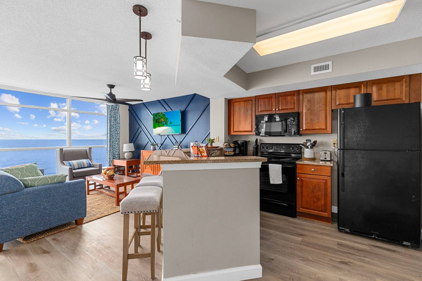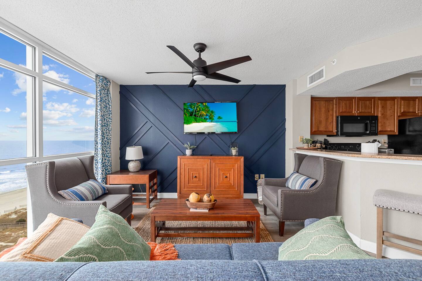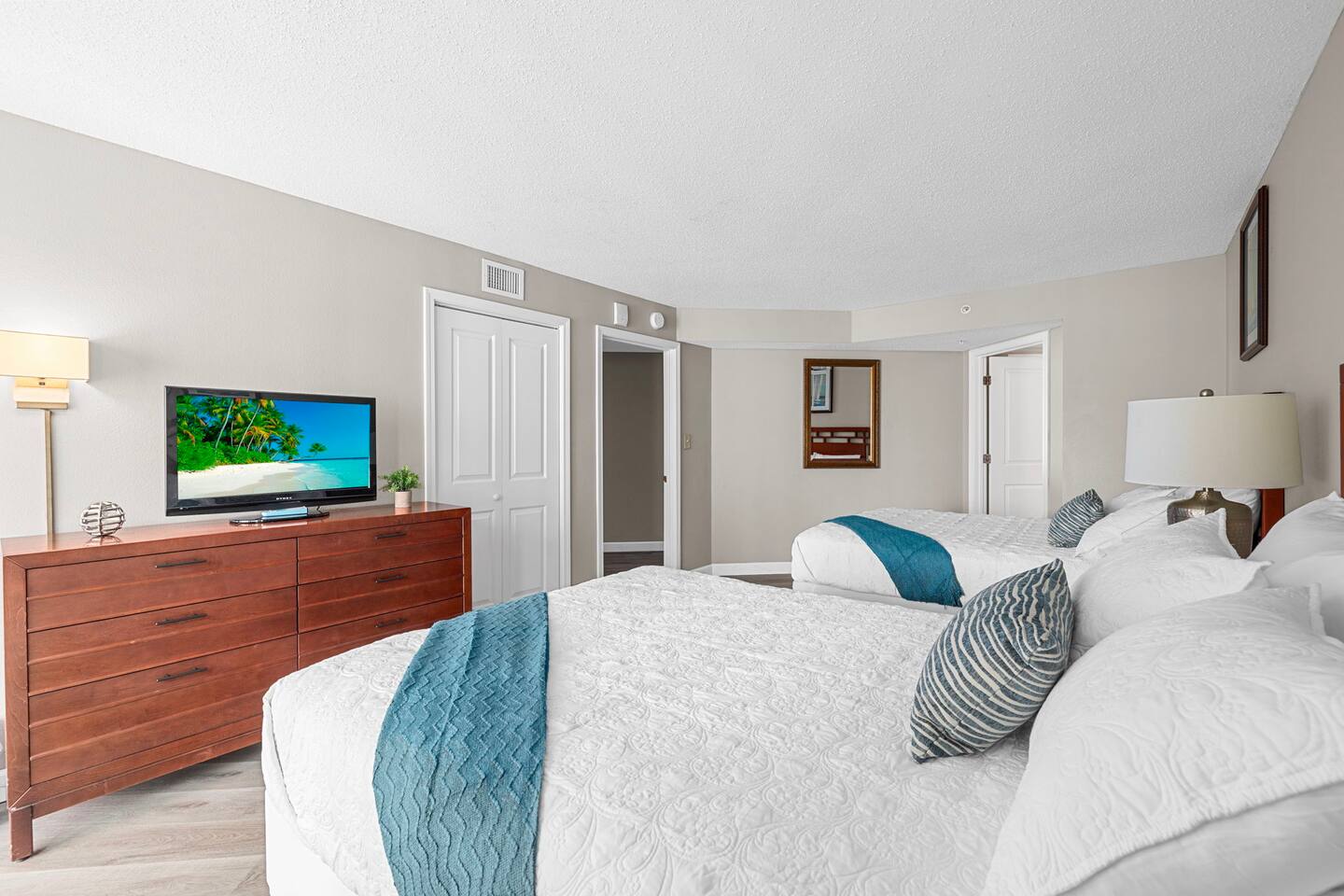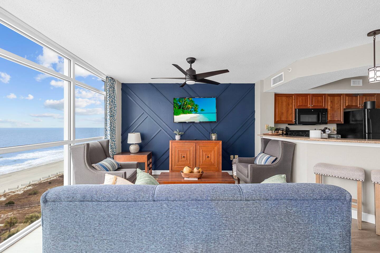 Experience beachfront bliss in our 2b/2b unit with floor-to-ceiling windows framing panoramic beach views. Unit is managed by Baha Beach Rentals. The living area ensures comfort for the whole family, with a king bed & private ensuite in the Main bedroom for ultimate relaxation. Indoor waterpark fun, featuring pools, hot tubs, & Lazy River for all ages. Our fully equipped kitchen makes meal prep a breeze. Book now to create memories! Bella Vista- Dunes village is managed by Baha beach rentals.