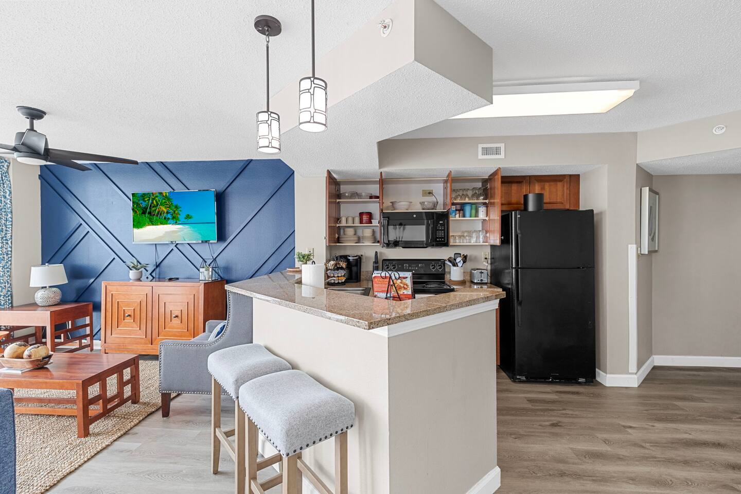 Welcome to our cozy and family-friendly retreat! Nestled in the heart of Myrtle Beach, our 2-bedroom, 2-bathroom Condo is the perfect home away from home for your next getaway. Step inside to discover a spacious and tastefully decorated living space, designed to provide comfort and relaxation for your entire family. The primary bedroom features a king-sized bed and a private ensuite bathroom, ensuring a peaceful and rejuvenating night's sleep. But the excitement doesn't end there – we're thrilled to offer access to an indoor water park right on the premises! Dive into the fun with several pools and hot water tubs, promising endless enjoyment for guests of all ages. Whether you're looking to make a splash or unwind in the soothing warmth of a bubbling tub, our water park is sure to be a highlight of your stay. Our fully-equipped kitchen is ready for your culinary adventures, and the dining area provides the perfect spot for family meals and game nights. The living room invites you to kick back and relax, complete with entertainment options for a cozy night in. Conveniently located near Restaurants and shopping, our Condo is the ideal base for exploring the wonders of Myrtle Beach. And after a day of adventures, return to the comfort of your home away from home. Book your stay now and create lasting memories with your loved ones at our family-friendly Condo where comfort, fun, and relaxation come together for an unforgettable vacation!